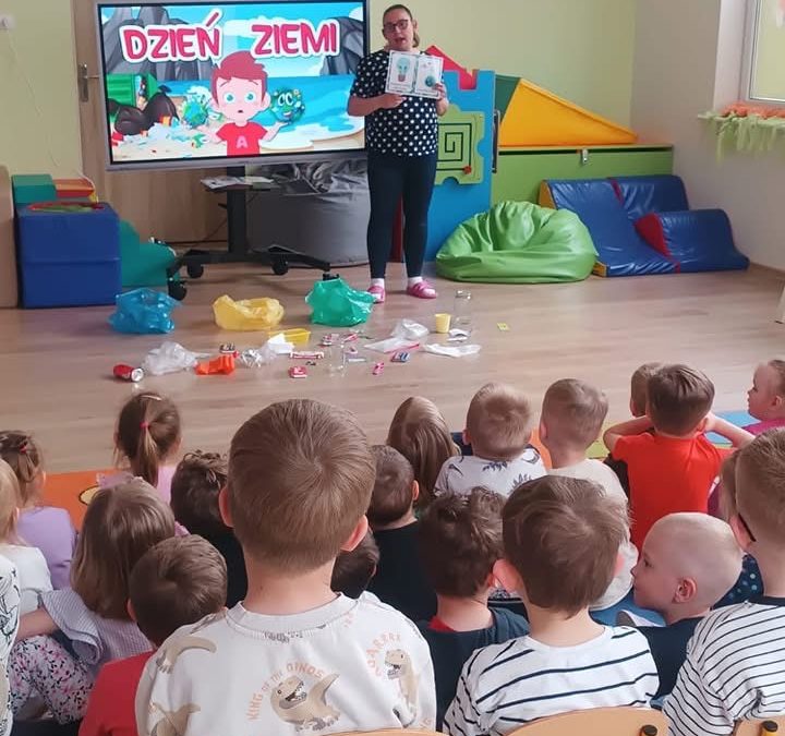 Podczas Dnia Ziemi przedszkolaki dowiedziały się jak należy dbać o naszą planetę oraz jakie są dla niej zagrożenia. Dzieci uczestniczyły w zajęciach praktycznych podczas których uczyły się segregować śmieci