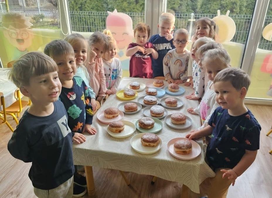 Na zakończenie wszyscy z wielkim apetytem zjedli pyszne pączki. To był dzień pełen uśmiechów, zabawy i słodkich wrażeń. 🍩